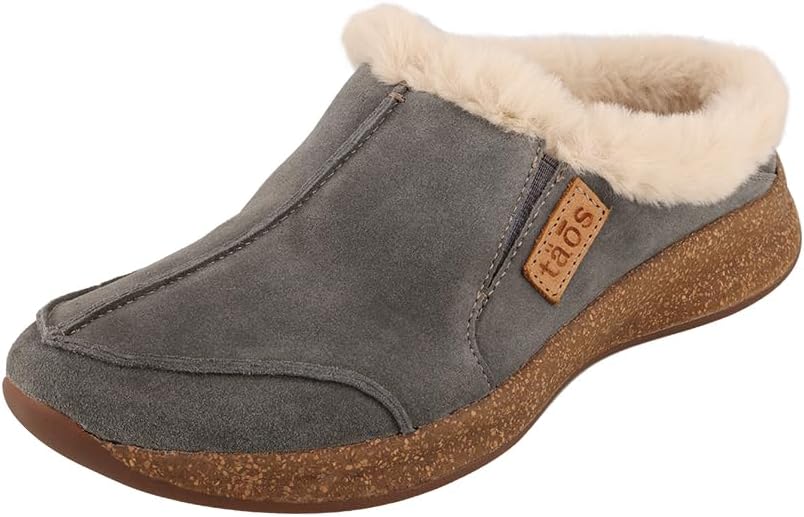 Women’s Taos, Future Clog. This cozy low-top clog is made with a water-resistant suede upper that offers a rich luxurious look. Paired with premium removable Curves & Pods footbed, faux fur lining and an EVA midsole this shoe is not only comfortable but durable as well. Water resistant suede uppersSlip on style for an easy on and offFaux fur lining is exceptionally soft Taos Curves & Pods removable footbed for added comfortFlexible cork/EVA midsole for shock absorptionRubber outsole with a unique honeycomb design