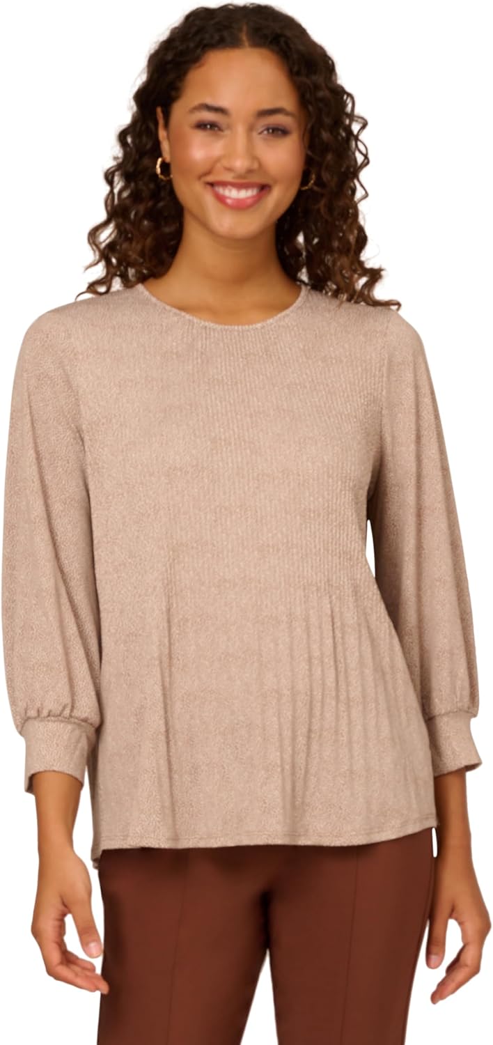 Attractive and comfortableThe size fit well, and we love the color and style. Wearing this top is comfortable and breezy as the material is soft and smooth and the trapeze bottom hangs loose and flows. The smaller pleats along the top were consistent and they transition nicely to the larger pleats along the trapeze bottom. The light cocoa color and microdots look good both up close and at a distance, and the colors match well with a number of styles and outfits. Its relatively loose fit also lends to its versatility. We would recommend this Adrianna Papell Women’s Print Knit Pleated Trapeze Top for its comfort and style.