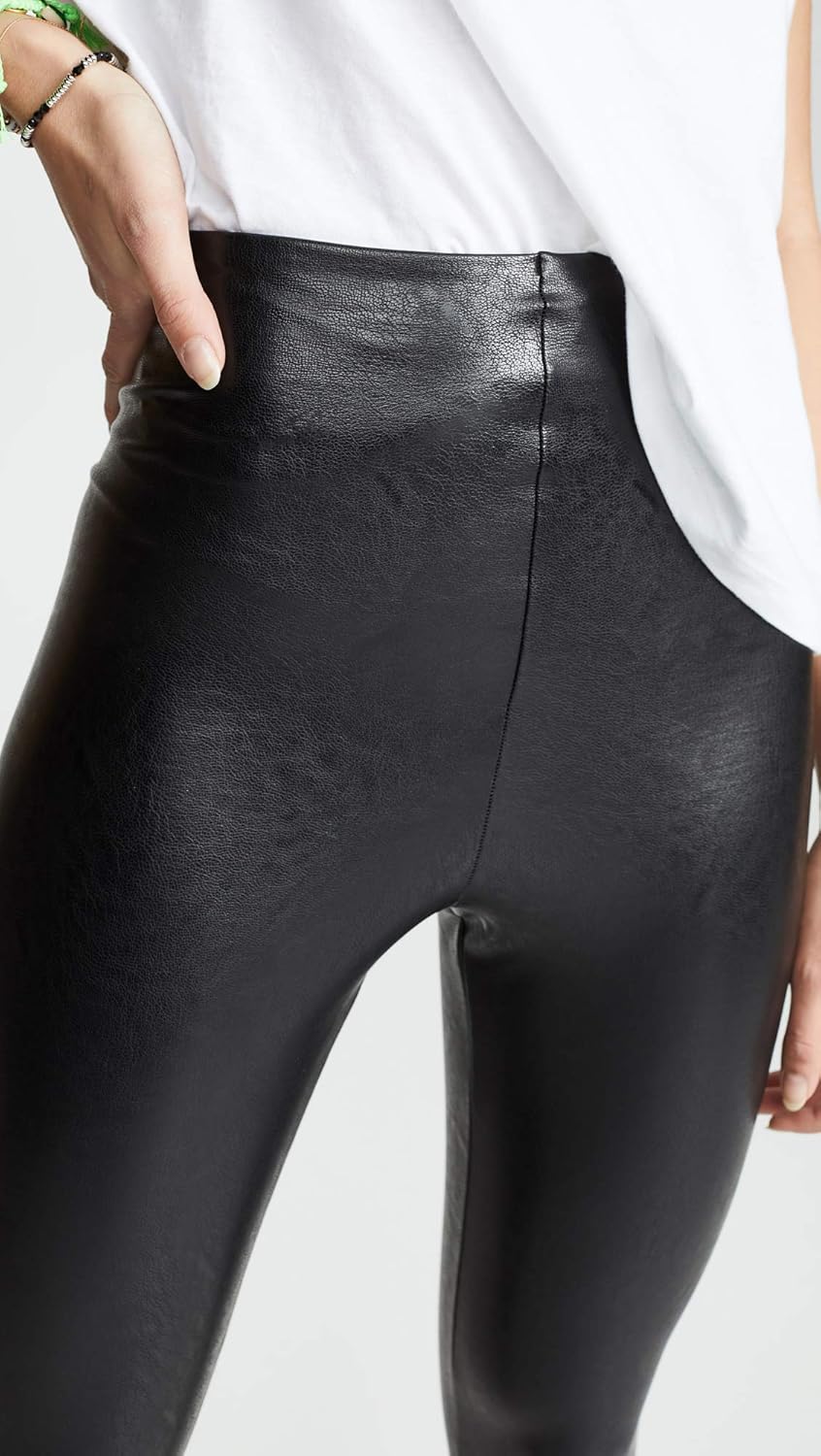 Comfortable & Flattering!I was looking for the the leather look while maintaining a level of comfort and these leggings are truly it. I didn’t like the splotchy look of the Spanx equivalent. I tried a few of the cheaper versions that had the look I was going for, but they were unflattering and wildly uncomfortable. The cheaper ones felt like a plastic Halloween costume and reviews indicated a lack of longevity. These leggings are exactly what I was looking for. While they may be more expensive, they are very much worth the price if comfort is a priority and you plan to make them a staple. The waist is controlled without being overly restrictive and high enough for a crop top. Some reviewers raved about the lack of underwear lines, but I’d still go with a thong. I ordered true to size without disappointment.