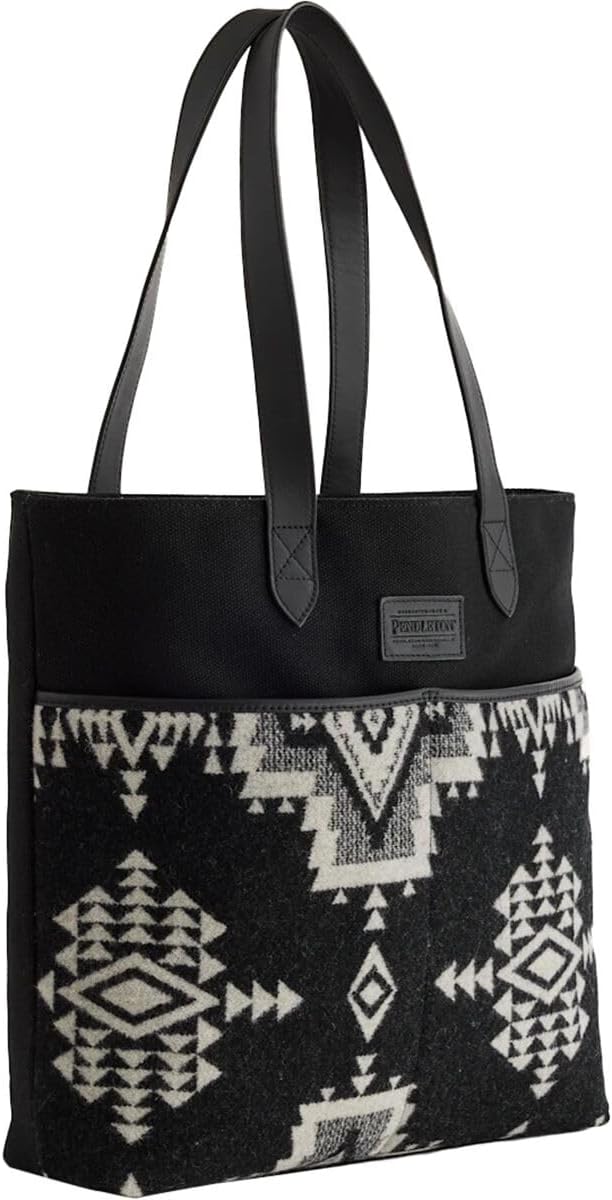A new tote style with leather straps, a cotton canvas body, and front pocket panel of USA-woven Pendleton wool.