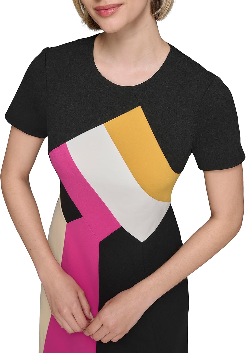 KARL LAGERFELD Women’s Color Block Recycled Scuba Crepe Short Sleeve a Line Dress