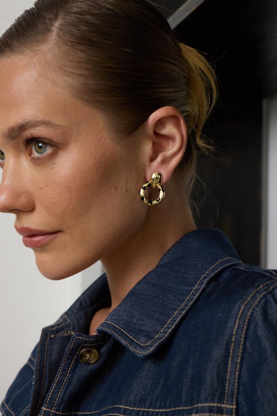 These polished gold with black enamel doorknocker clip-on earrings, designed by renowned fashion jewelry designer Kenneth Jay Lane, are an immaculate addition to any style.
